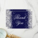 Sparkly Silver Glitter Navy Blue Thank You Card