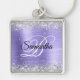 Sparkly Silver Glitter Periwinkle Foil Monogram Keychain