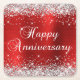 Sparkly Silver Glitter Red Foil Happy Anniversary Square Paper Coaster