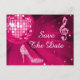 Elegant, glamourous 15th Birthday / Quinceañera Birthday save the date postcards. Trendy glitz and glamour Save the dates for your 15th / Quinceañera birthday party celebrations. Beautiful, dazzling hot pink and silver sparkles diamonds bling jewels musical note image, funky pink retro disco mirror ball and hot pink and silver glittery stiletto high heel fashion shoe image on a chic pink background. A cute, classy, fashionable, stylish, pretty save the date postcard for women's birthday parties. Women will love this cool, fun, funky, girly design for their glamourous music and dancing parties. If you need any assistance in customizing your product please contact me through my store and i will be very happy to help.