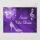 Elegant, glamourous 50th Birthday / Fiftieth Birthday save the date postcards. Trendy glitz and glamour Save the dates for your 50th / Fiftieth birthday party celebrations. Beautiful, dazzling purple/lilac/Lavender sparkles diamonds bling jewels musical note image, funky purple/lilac/lavender retro disco mirror ball and purple/lilac/lavender glittery stiletto high heel fashion shoe image on a chic lilac background. A cute, classy, fashionable, stylish, pretty save the date postcard for women's birthday parties. Women will love this cool, fun, funky, girly design for their glamourous music and dancing parties. If you need any assistance in customizing your product please contact me through my store and i will be very happy to help.
