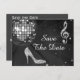Elegant, glamourous 75th Birthday / Seventy fifth Birthday save the date postcards. Trendy glitz and glamour Save the dates for your 75th / Seventy five birthday party celebrations. Beautiful, dazzling silver sparkles diamonds bling jewels musical note image, funky silver retro disco mirror ball and silver glittery stiletto high heel fashion shoe image on a chic black background. A cute, classy, fashionable, stylish, pretty save the date postcard for women's birthday parties. Women will love this cool, fun, funky, girly design for their glamourous music and dancing parties. If you need any assistance in customizing your product please contact me through my store and i will be very happy to help.