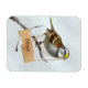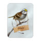 White-throated sparrow (Zonotrichia albicollis) in the snow. Small wooden board. Custom name. Ideal for gift giving.