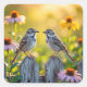 Sparrows and Cone Flowers By a Wood Fence Square Sticker