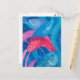 Postcard featuring colourful artwork, blue and pink fishes bouncing in water streams. Pastel painting, underwater motif, decorative art. © Clipso-Callipso / Julia Khoroshikh www.clipsocallipso.art #underwaterart #fish #softpastels #pastelpainting #pastelartist #clipsocallipso #postcard #postcards #greetingcard