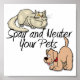 Cartoons of a cat and dog with the words Spay and Neuter Your Pets between them. There are millions of unwanted animals in shelters, be a responsible pet owner and have your pet spayed or neutered.
