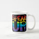 Rainbow coloured words"SPEAK UP!" with a peace sign.