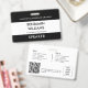 Streamline your event experience with this sleek speaker name badge featuring a clean black-and-white design and a functional double-sided layout. The front clearly displays attendee details, while the back includes a convenient event schedule and QR code for quick access to important information. Perfect for conferences and trade shows, this badge combines professionalism with practical usability.
