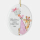 Adorable Baby's 1st Christmas ornament featuring a stork with a baby girl giraffe bundle. Room on the back of the ornament to add your baby photo.