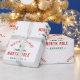 A Special Delivery From The North Pole wrapping paper featuring authentic looking red and green graphic text fonts with big round falling snow.