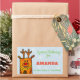 Funny reindeer Christmas holiday gift sticker for children. Christmas present special delivery sticker - personalize the sticker with your text and child`s name. Do not open til Christmas - you can change or erase it. The sticker has a funny deer drawing - deer with red nose and a small bell. The background is pale blue with beautiful white snowflakes in different sizes and shapes. Make your Christmas gifts for kids special with this funny and cute holiday present sticker. Kids will love it.