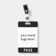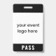Customize this simple modern event pass badge with your logo. If your logo is square, it will fill up the white space entirely. If your logo is not square, it will show on a black background. The back of the badge can be personalized with the event name and date or year, or you can delete both to have an all black back. This minimalist pass badge is ideal for various types of passes at special events, festivals, concerts and conventions.