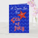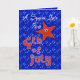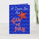 First Fourth of July greeting card for a special girl with cute red stars on a blue sky filled with the lights of Independence Day fireworks. Inside text may be personalized using the template provided. Original art and design by Anura Design Studio.