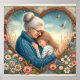 Celebrate grandma's love with this heartwarming embrace! This detailed artwork features a grandmother and granddaughter in a heart-shaped vine with wildflowers.