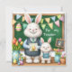This Easter card is designed for students to present to their teachers. It features a customizable template, allowing for personalized greetings or the inclusion of images. The design is easily adaptable for use on a folded card, offering presentation flexibility. Created from an AI prompt illustration, this card features a Teacher Rabbit with a boy rabbit student in a classroom with a chalkboard and spring decorations. It's a delightful card for preschoolers or young students to give to their teacher.