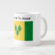 The mug displays the national colours of the St Vincent and the Grenadines flag with the three diamonds in the middle.