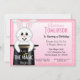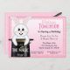L'invitation d'anniversaire de lapin mignon a un lapin mignon qui sort d'un casquette noir de magicien. Le lapin a une baguette magique et les mots, Que la magie commence. Customisez avec les détails de votre fête d'anniversaire.