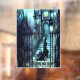 This haunting, graphic photo displays, a tall, ancient-looking, wrought iron, gate entrance. In the courtyard, at the base of the steep, steps stands, a ghostly figure, swathed in flowing, black cloth-at the top of the steps, on a hill, is a huge, gothic-looking, mansion, shrouded in thick fog, highlighted by this spooky phrase, "Enjoy A Boo-tiful Holiday", in oozing, dripping, black font!