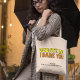 These bags were super cute (I purchased 3). The material is more of a canvas look & feel. The colour of the bag is slightly off white, but the letters look exactly as pictured. I took 3 photos in different lighting. Would recommend! I liked how there was an option to choose the font and colour of the name. The words are legible and the colours are exactly as pictured.