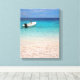 Impression en toile d'un hors-bord dans l'eau bleu turquoise de la mer Méditerranée à la petite plage blanche de Cala Goloritze dans le golfe d'Orosei, Sardaigne, Italie.