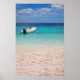 Poster print of a speedboat in the turquoise blue water of the mediterranean sea at the small, white beach of Cala Goloritze in the Gulf of Orosei, Sardinia, Italy.