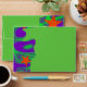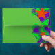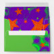 Green envelope with a swirling purple and green pattern scattered with magical, glowing orange and green stars. A purple, green and orange customizable design for you to add your own text, images and ideas. Matches invitations and cards in the 'Spellbound' range. Created using digital techniques by Jess Perry.