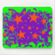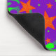 Mousepad with a swirling purple and green background scattered with magical, glowing orange and green stars. Created using digital techniques by Jess Perry.