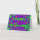 Greetings card with a swirling purple and green background scattered with magical, glowing orange stars and the words 'Happy Halloween' written in bright green. A purple, green and orange customizable design for you to add your own text, images and ideas. The text can easily be changed using the template provided or click the 'Customize It' button to make further alterations. Matching envelope and postage stamp available. Created using digital techniques by Jess Perry.