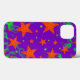 Phone case scattered with "glowing" orange and green stars on a swirling purple and green background. A customizable design for you to add your own text, images and ideas. Created using digital techniques by Jess Perry.