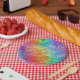 Super bright rainbow gradient across seamless field of crystal texturing.