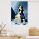 Sphinx in the snow with pyramid in the background. This is a AI generated art.