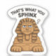 Apportez la mystique Sphinx à votre équipement avec un jeu de mots moderne et plein d’esprit - "C’est ce que vous avez Sphinx." Les lignes de dessins audacieuses et les tons chauds de pierre paraissent étonnants, captivants et fascinants même en miniatures, tandis que la silhouette découpée apparaît sur n'importe quelle surface. Inspiré par le gardien légendaire de Gizeh et ses énigmes, cet article ajoute une profondeur culturelle à un humour ludique. Imprimé en qualité muséale sur vinyle durable à l'aide d'encres d'archivage et résistantes à la fondue pour des détails nets et des couleurs durables. Parfait pour les amateurs d'Egypte, les étudiants, les enseignants et les fans de jeux de mots : utilisez-le sur les ordinateurs portables, les bouteilles d'eau, les carnets, les cabines téléphoniques et les appareils de dortoir. Un cadeau mythologique unique et un véritable début de conversation avec une forte adhésion et un peel propre. Vous pouvez également aimer notre collection exclusive Funny Ancient Egyptian Humour & Cartoons (recherchez-la dans notre boutique).