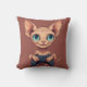 Sphynx Cat Holding Game Controller Throw Pillow