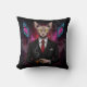 Sphynx Mafia Cat in Neon Noir Style Throw Pillow