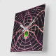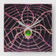 SPIDER AND WEB Emerald Green Gemstone Black Square Wall Clock