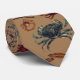 Spider crabs tie with pattern of creepy crustaceans over a light brown background. Large and small sea crabs crawl over this novelty tie.