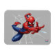 Check out Spider-Man's various heroic poses atop a grey triangular geometric pattern.