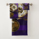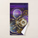 Araignée de vapeur en or et en acier avec montres antiques décorées avec des engrenages en or sur violet, rayé, texturé arrière - plan avec lentilles et engrenages en laiton. Style Steampunk.