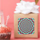 A geometric fractal image with an colourful optically challenging design in blue, turquoise yellow,red, green and pink by Objowl.