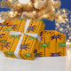 Cute purple and green spiders on a bright orange pattern wrapping paper design would be perfect for a Halloween party or gift. Chose from several different lengths and styles.