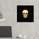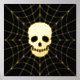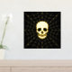 A dramatic vector designed graphic skull and spiderweb in a stark Gothic style template.