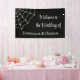 Welcome guests to your wedding or other special event in style with this easy to customize banner. The gothic style design features an illustration of a spiderweb in one corner. The ecru or eggshell white graphic and text are against black background.