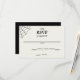 This RSVP or response card can be customized with your own date. The simple card has spots for your guests to write in their name(s) and to check off whether or not they will be attending and fill-in the total number of guests in their party. Black lettering is set against a soft ecru coloured background with black spiderweb accent in the upper corner.