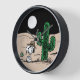 Check out Spike sitting by a cactus in the desert at night.