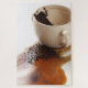 Spilled coffee and coffee grounds on a white background. Cup of coffee with coffee grounds.