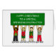 Four cartoon characters in festive patterned sports wear, holding up a dark green sign that says 'Happy Christmas to a special spinning instructor'.