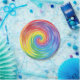 A colourful array of bright rainbow colours that have a transparent like texture to it, swirled to give it a spinning kind of feeling.