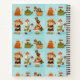 A spiral-bound notebook features a playful pattern on a light blue background. The design includes children in animal costumes, colorful mushrooms, a rabbit, and picnic baskets. The cheerful illustration conveys a whimsical, outdoor adventure theme.