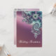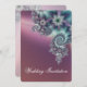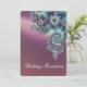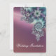 An elegant wedding invitation with a spiral fractal design, with jewel like flower motifs with silky shading in shades of turquoise, violet and dark blue on the front and a paler version on the reverse. The script font is in white and dark blue, but can be customised to another colour.