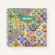 Mexican, Moroccan, Sicilian Mediterranean green tiles notebook. Chic floral botanical citrus garden pattern inspired by the summer bright italian themed art of majolica Sicilian ceramic tiles in pink yellow and blue. A fun style bright design for home decor, clothes, mobile and Ipad cases, invitations and much more. You can change all text colours and fonts, click to customize further underneath the text customisation area this will take you into the design tool. A unique gift for birthdays, holidays and any special occasion. Whether for valentines day, Christmas or as a gift in general it makes a great gift idea